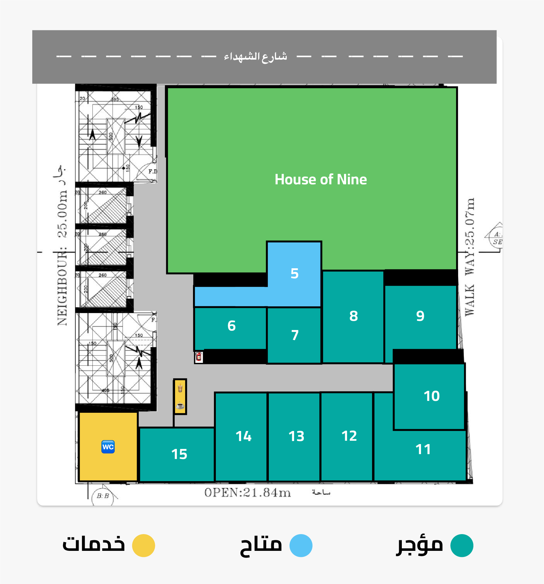 جميع المكاتب مجهزة + مع الأرقام الآلية وشامل خدمات التنظيف